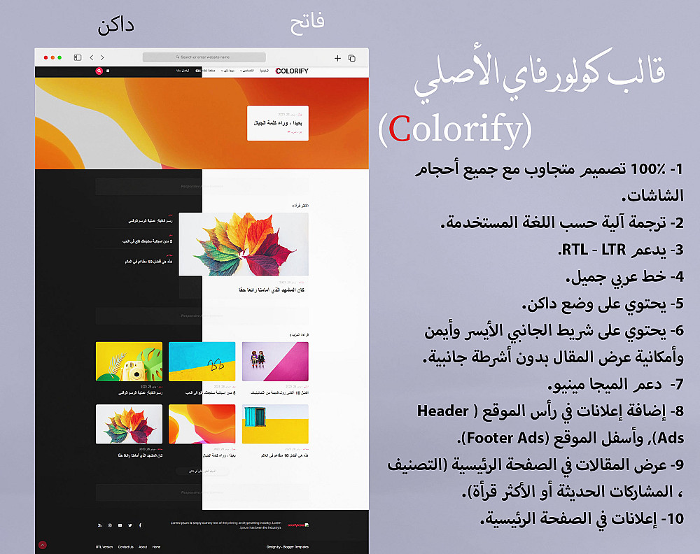 قالب كولورفاي (Colorify) - قالب بلوجر جميل وحديث متعدد الاستخدامات