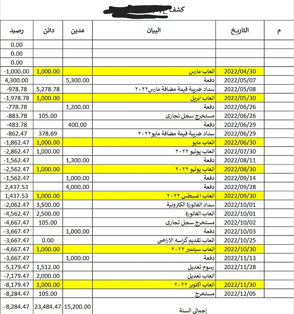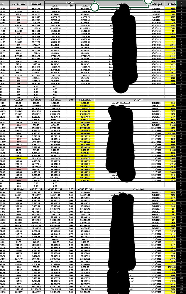 سوف أقوم بعمل ملف إكسل ٣٠٠٠ خليه مقابل سعر الخدمه ، يضم شيت للمشتريات ، شيت للمصروفات ، شيت للمبيعات ، شيت سنوى مجمع لكل منهم ، بالاضافه لشيت صافى الارباح الشهرى والسنوى .