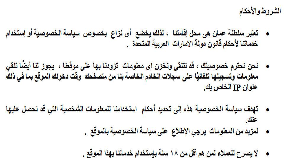 نقدم لكم خدمة مقدمة للمواقع اللأكترونية والبرامج على الهاتف المحمول ذات صياغة قانونية سليمة باللغتين العربية والأنجليزية حسب طلبكم , تشمل خدماتنا المفدمة :