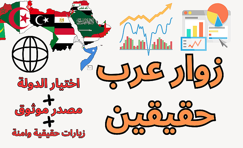 الزوار حقيقين من الدول العربية ويمكنك تحديد الدولة اذا اردت التى تريد الزيارات منها من هذة الدول ( سوريا - لبنان - الأردن - فلسطين - العراق - السعودية - الإمارات العربية المتحدة - عمان - قطر - مصر - تونس - المغرب - الجزائر - ليبيا).