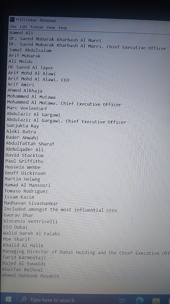 ٢- قم بنسخ اسم كل رئيس تنفيذي.