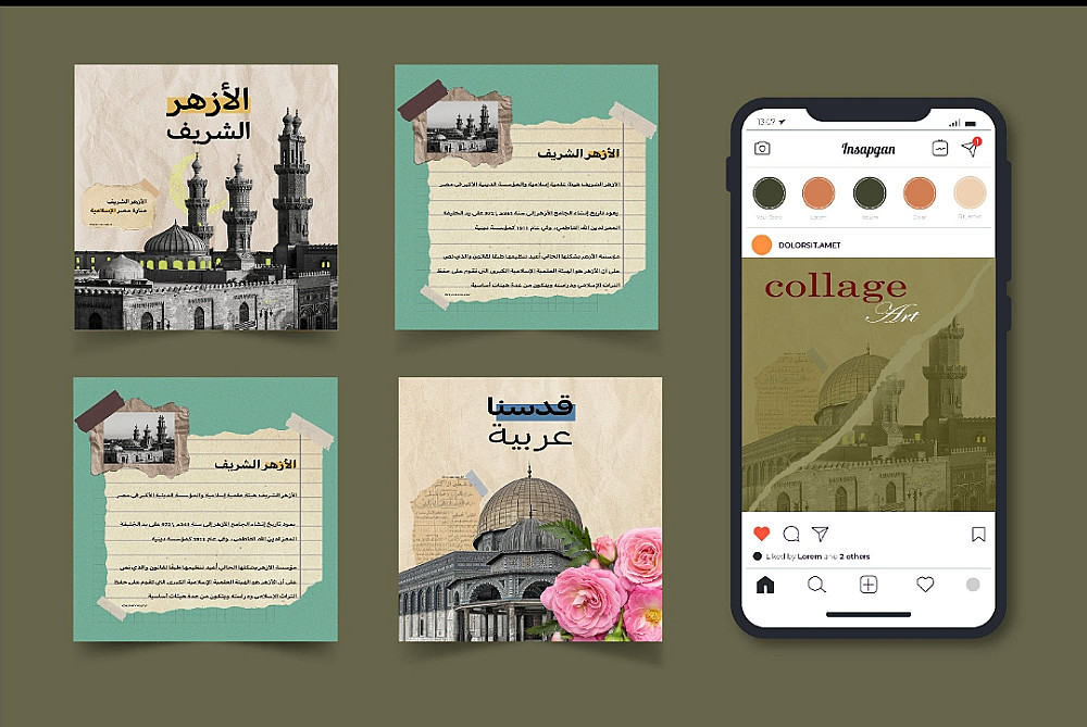 سأقدم لك تصميم لفن الكولاج ارت لبوستات السوشيال ميديا والمؤسسات الإعلامية والشركات