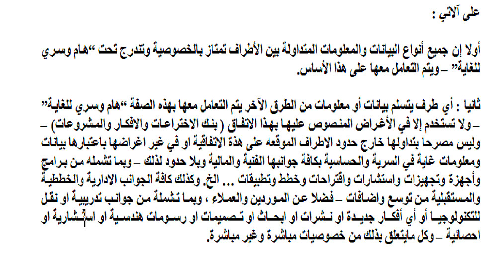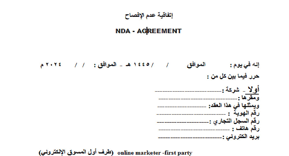 نقدم لكم أفضل صياغة اتفاقية عدم الإفصاح التجارية بالعربية والإنجليزية متوافقة مع القانون المصري او السعودى او الإماراتي
