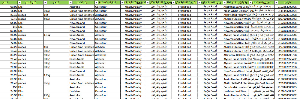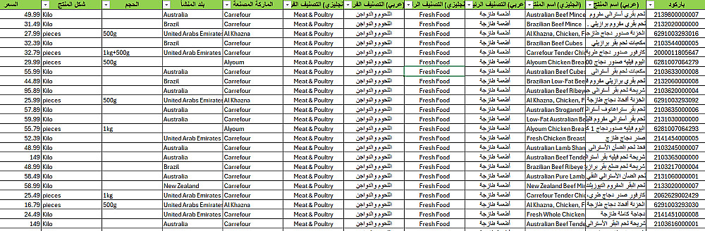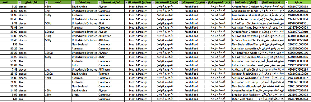 قاعدة بيانات منتجات سوبرماركت الامارات | قائمة اصناف 76 ألف منتج