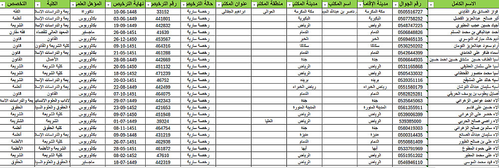 - قاعدة البيانات تحوي 11,148 الاف مكتب محاماة مع أرقام الجوال