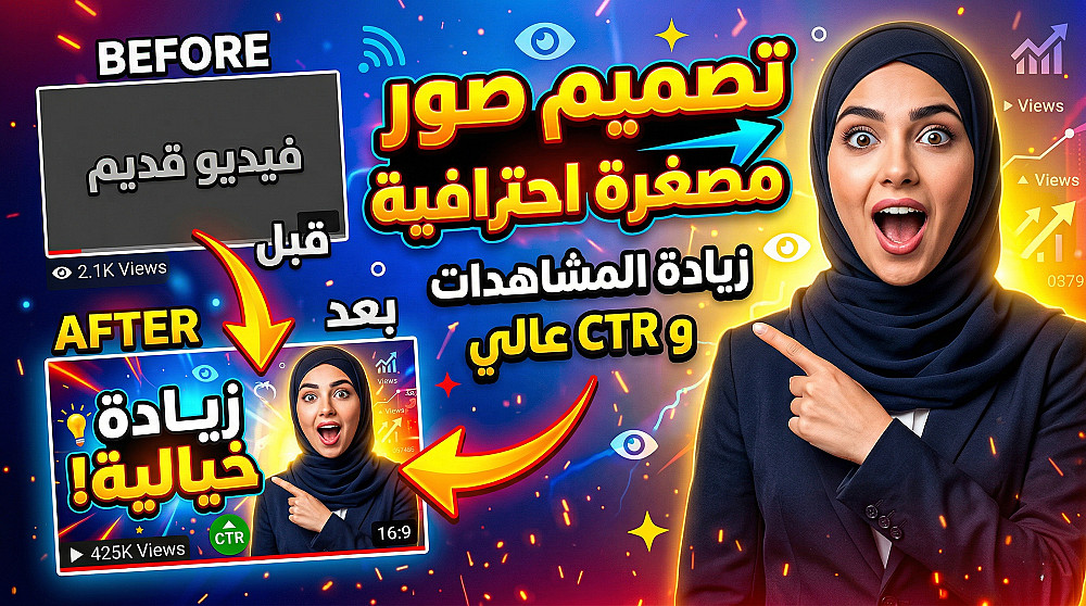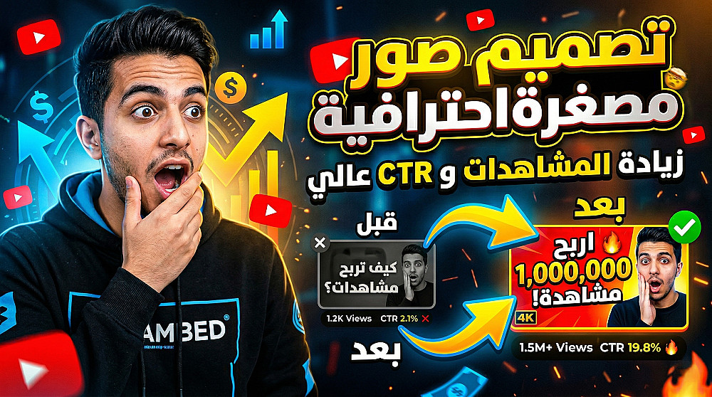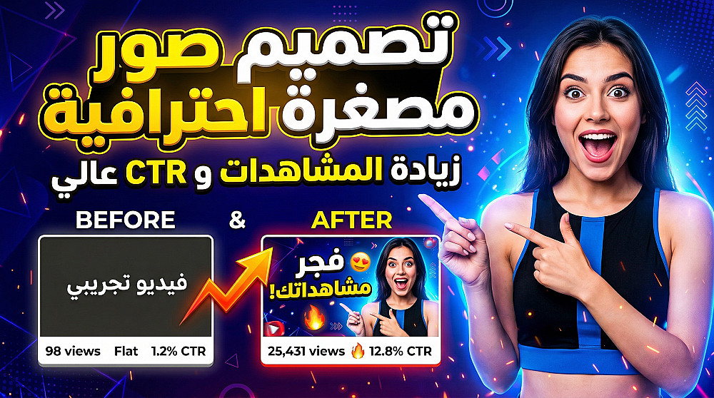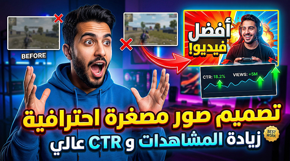 تصميم صور مصغرة احترافية لليوتيوب تزيد المشاهدات (CTR عالي)