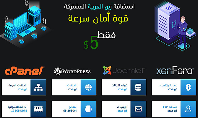ابتداءا من 5 دولار يمكنك إنشاء موقعك على استضافة تتميز بالقوة و السرعة و الامان.