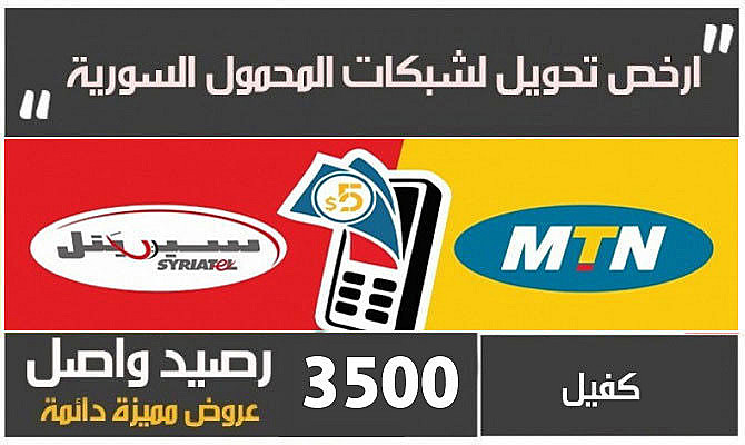 تحويل رصيد موبايل لشركتي سيرياتل و mtn في سورية