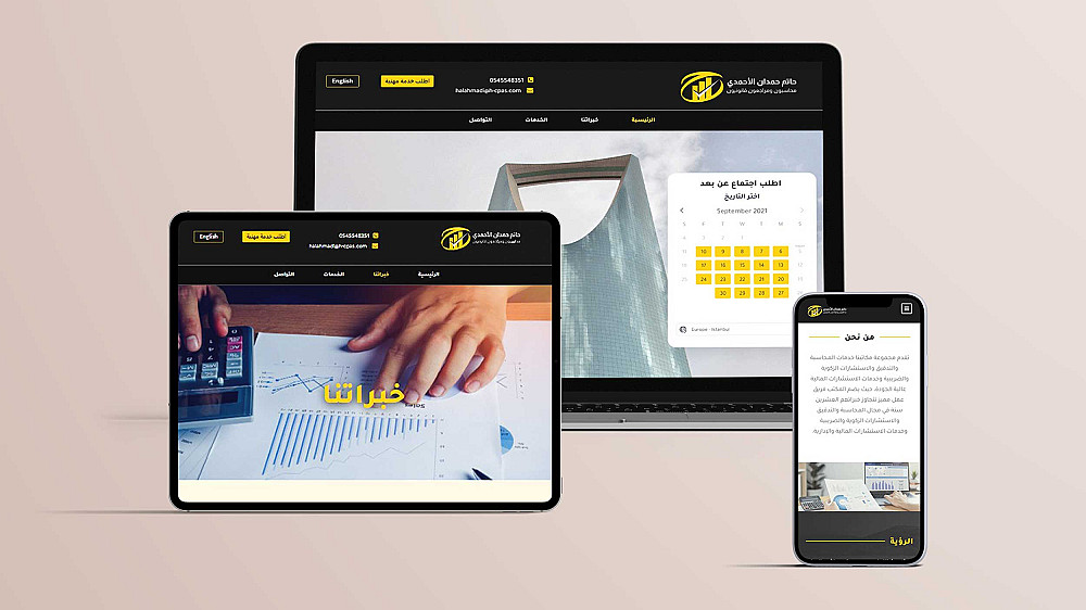 عدد الصفحات: من 1 إلى 4 صفحات (واجهة رئيسية، من نحن، خدماتنا, تواصل معنا أو حسب ما يناسب المشروع).