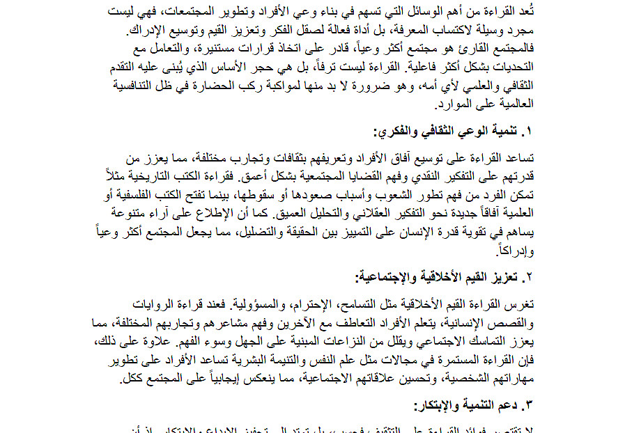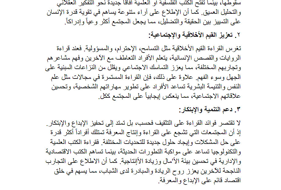 ملاحظة: يتراوح عدد الكلمات بين (٥٠٠) حتى (٦٠٠) كلمة للمقالة الواحدة