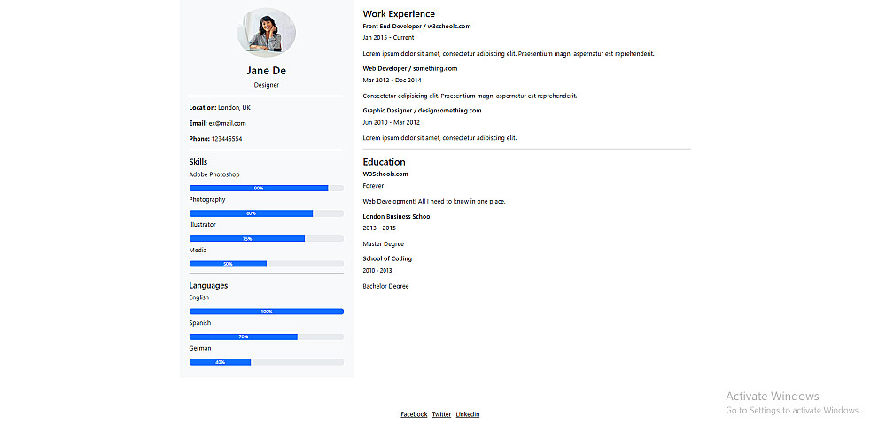 صفحه سيرة ذاتيه باستخدام HTML,CSS,Bootstrap و الصفحه resbonsive