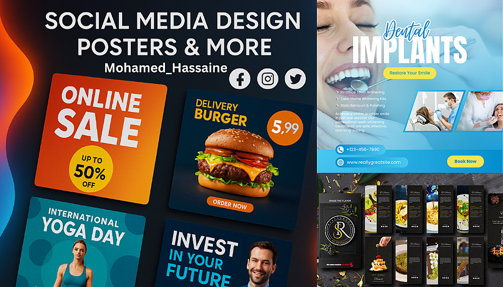 أنا محمد، مصمم محترف بخبرة 7 سنوات في تصميم المحتوى الرقمي، أقدّم لك خدمة تصميم منشورات وبوسترات بأسلوب عصري واحترافي.