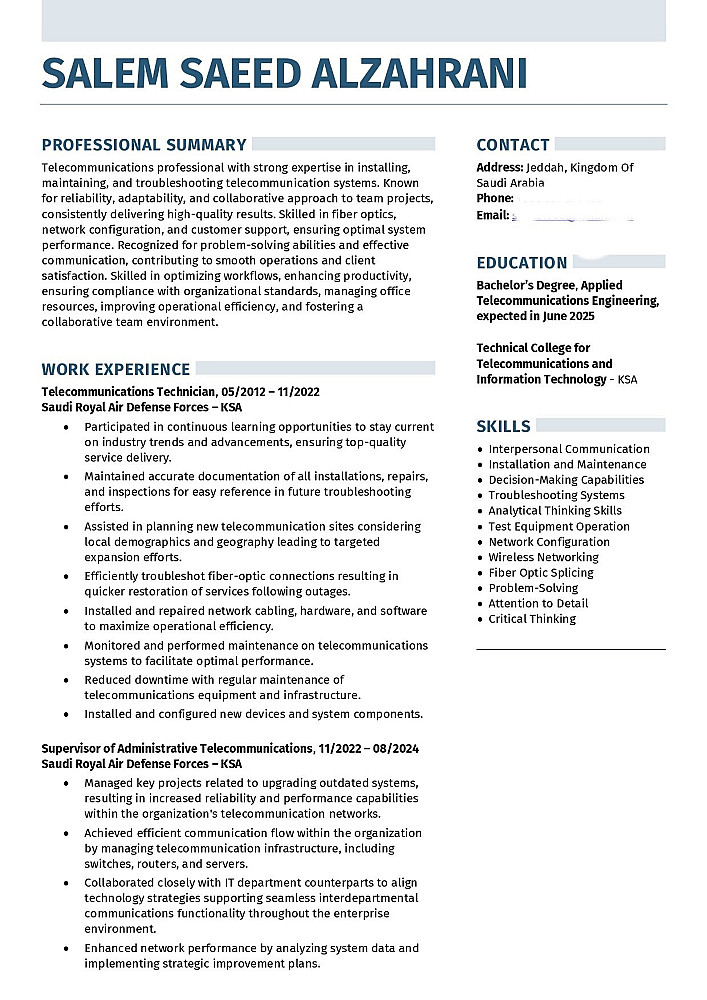 1: سيرة ذاتية ذات جودة عالية ومتوافقة مع قواعد ATS بنسبة قبول تتخطى 90% باستخدام برامج فحص دقيقة ومميزة