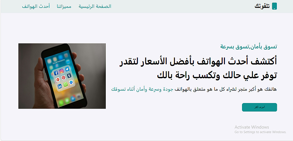 Landing Page عصرية لمتجر إلكتروني متخصص في بيع الموبايلات