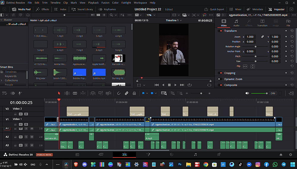 أنا مونتير محترف أقدّم خدمة مونتاج باستخدام DaVinci Resolve، البرنامج الرائد في تصحيح الألوان والمونتاج السينمائي.