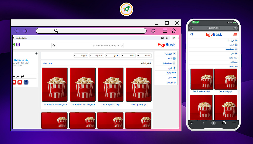 تم اخفاء صور أغلفة الافلام من صور المعرض "إمتثالا لقوانين Kafil والتي تنص على "منع إستخدام صور/فيديوهات فيها نساء غير محجبة سواء حقيقية أو رسوميات" ولمعاينة الموقع : https://www.egybest.pics