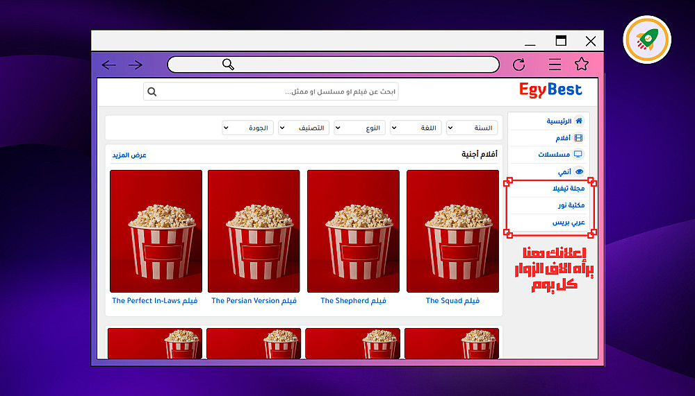 أقدّم لك خدمة مميزة للحصول على رابط نصي Do Follow موجه لموقعك وبالكلمة المفتاحية التي تختارها، يظهر أسفل القائمة الرئيسية مباشرة في موقع EgyBest.