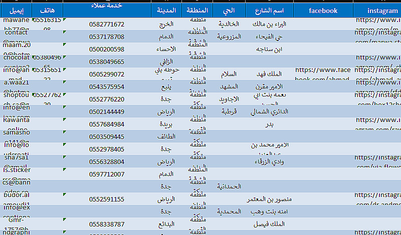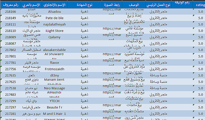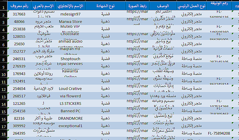 بيانات 70 الف متجر الكتروني سعودى خاصة بموقع معروف بملف اكسيل وهذه البيانات تشمل :