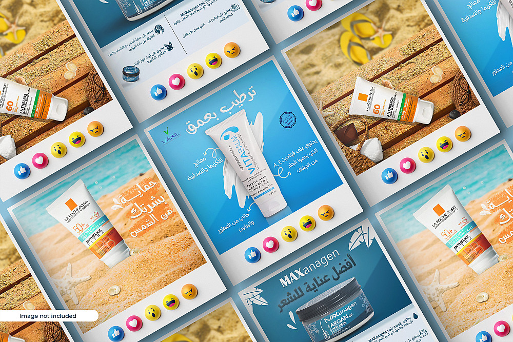 سأصمم لك 8 تصاميم بوستات للسوشيال ميديا دقة عالية