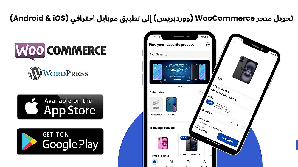 تحويل متجر WooCommerce (ووردبريس) إلى تطبيق موبايل احترافي (Android & iOS)