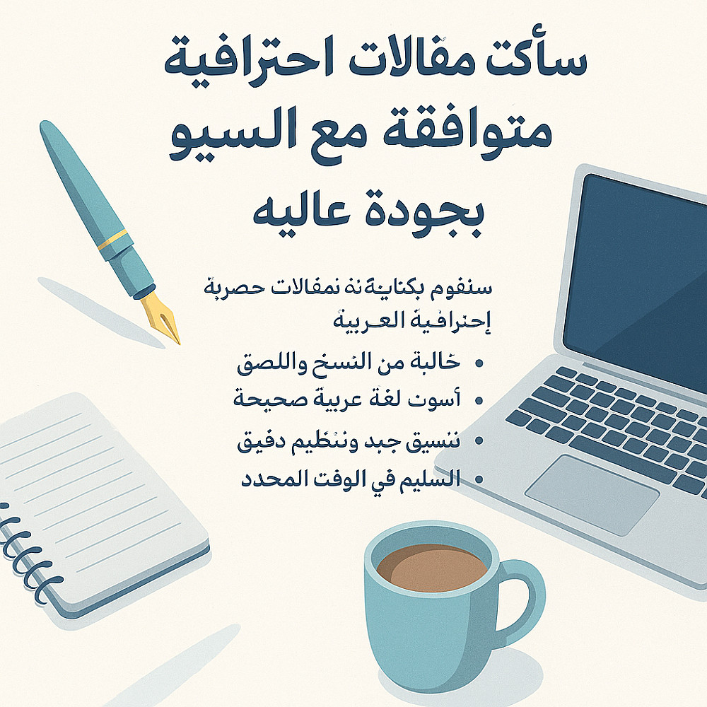 سأقوم بكتابة مقالات حصرية واحترافية باللغة العربية أو الإنجليزية، متوافقة مع معايير السيو (SEO) وتناسب مدونتك أو موقعك الإلكتروني.