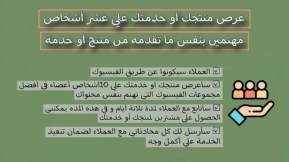 عرض منتجك أو خدمتك علي 10أشخاص مهتمين بنفس ما تقدمه .