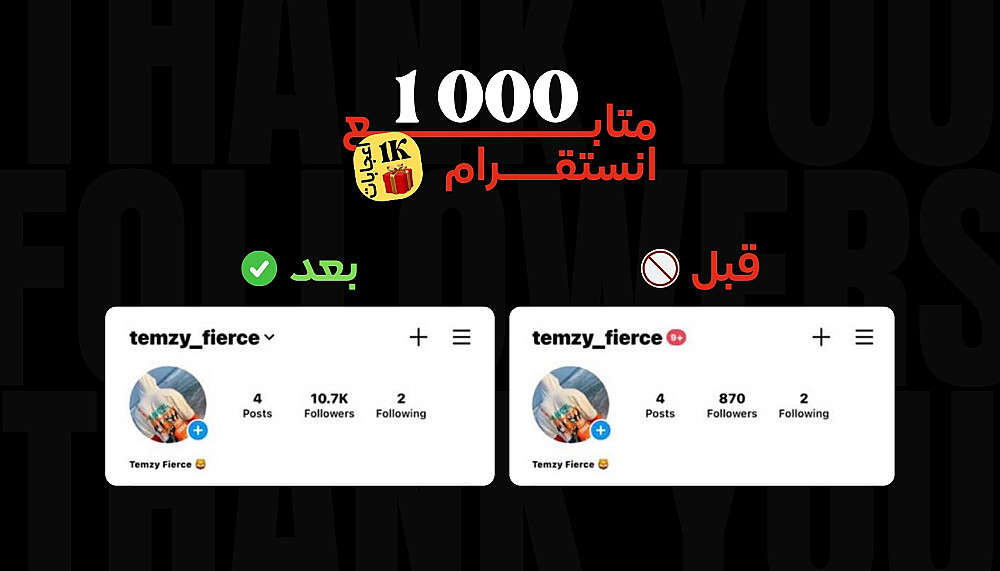 1000 متابع على الانستقرام من خلال السيرفرات آمنة وجودة عالية (ضمان 3اشهر)
