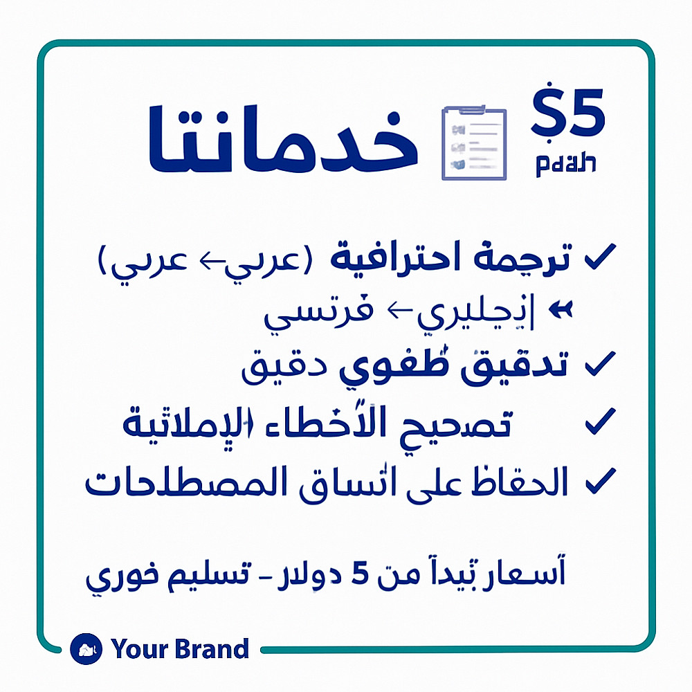 ترجمة احترافية (5 دولار - 24 ساعة)