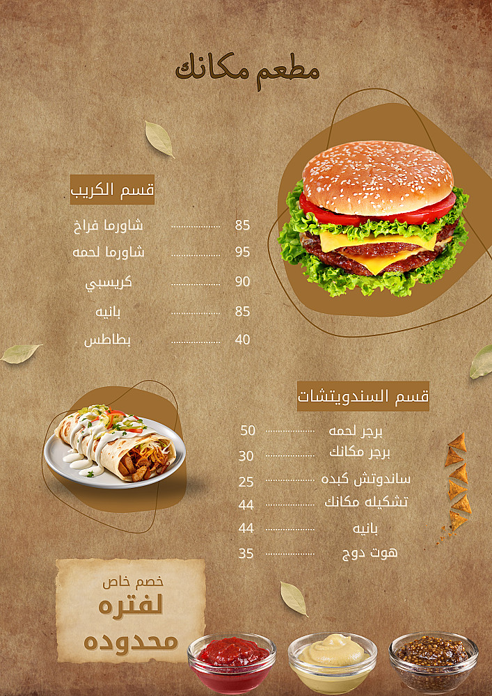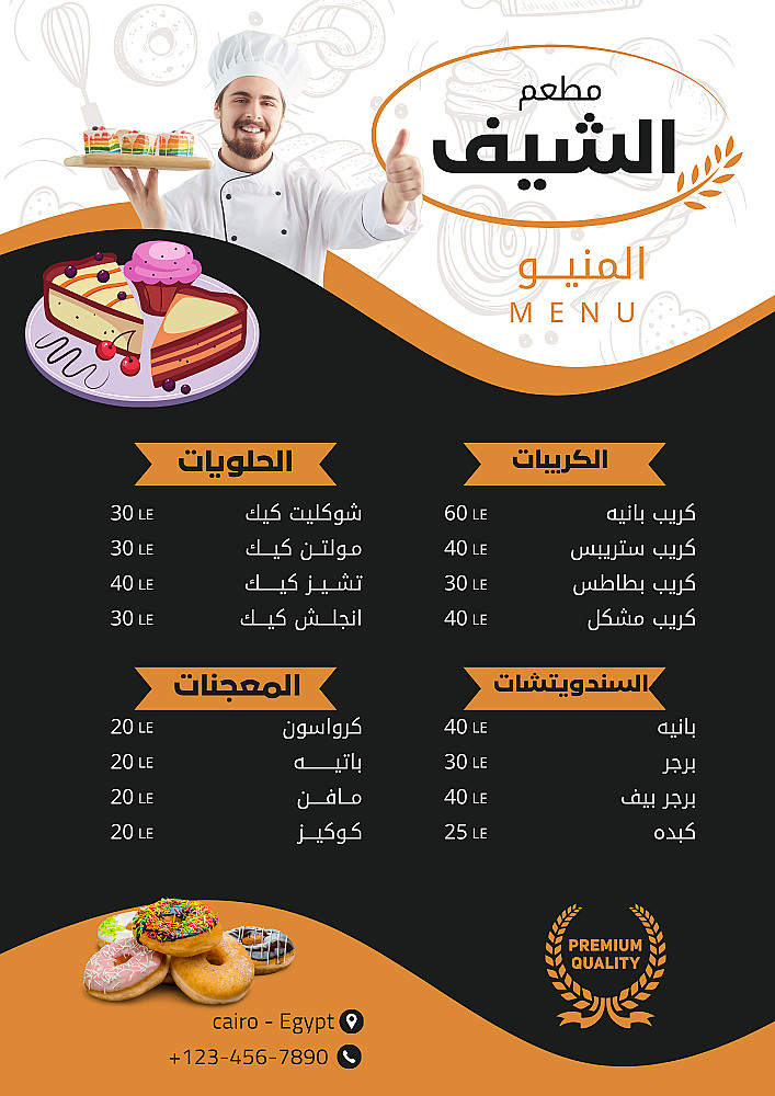 تصميم منيو احترافى للمطاعم والكافيهات باعلى جوده والوان متناسقه مع الهويه البصريه مرتبه ومنظمه لتسهل علي العميل الطلب يتم التسليم pdf للطباعه باعلى جوده وصوره للعرض بمواقع التواصل الاجتماعي غير متاح تسليم ملفات المصدر psd