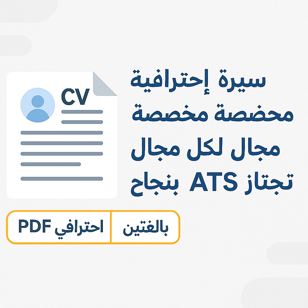 أقدّم لك خدمة كتابة سيرة ذاتية بصيغة PDF احترافي ومنسق بعناية، متوافقة مع أنظمة تتبع المتقدمين (ATS) لتضمن اجتياز الفلاتر الإلكترونية والوصول ليد مسؤول التوظيف.