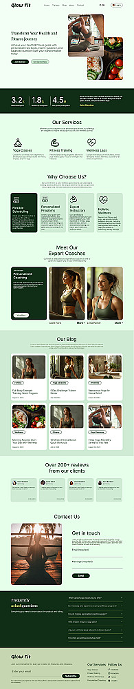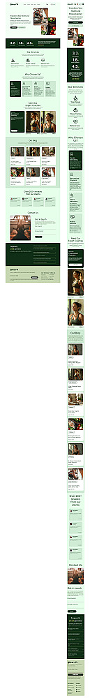 Landing Page احترافية ومصممة بعناية لتمثّل أسلوب حياة صحي ومتوازن، تجمع بين عناصر اللياقة البدنية (Fitness) والتغذية الصحية (Healthy Eating).
