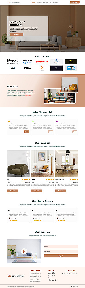 صفحة هبوط (Landing Page) مخصصة لمنتجات الأثاث