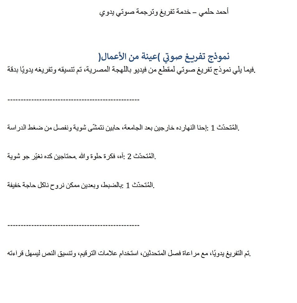 أنا هقوم بتفريغ المحتوى يدويًا 100% بدون استخدام أي أدوات آلية، وبجودة عالية وبدون أخطاء إملائية أو لغوية.