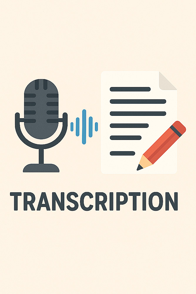 أقدم لك خدمة تفريغ احترافية للمقاطع الصوتية أو الفيديوهات إلى ملف نصي بصيغة Word أو PDF، سواء باللغة العربية أو الإنجليز