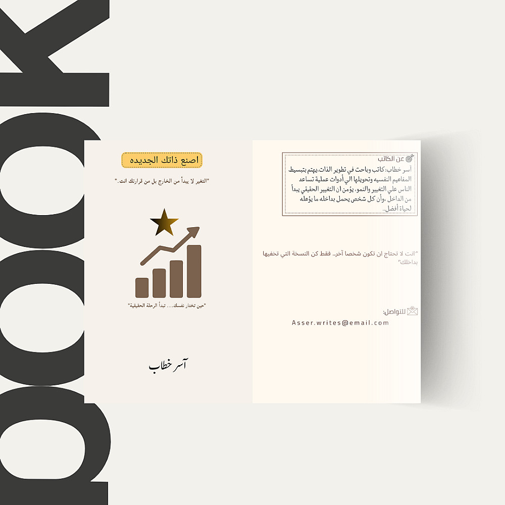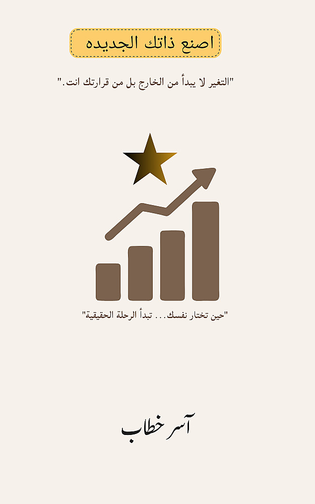 🔸 نموذج العمل في الصور هو غلاف من تصميمي لكتاب "اصنع ذاتك الجديدة" ويعبّر عن فكرته بدقة وأناقة.