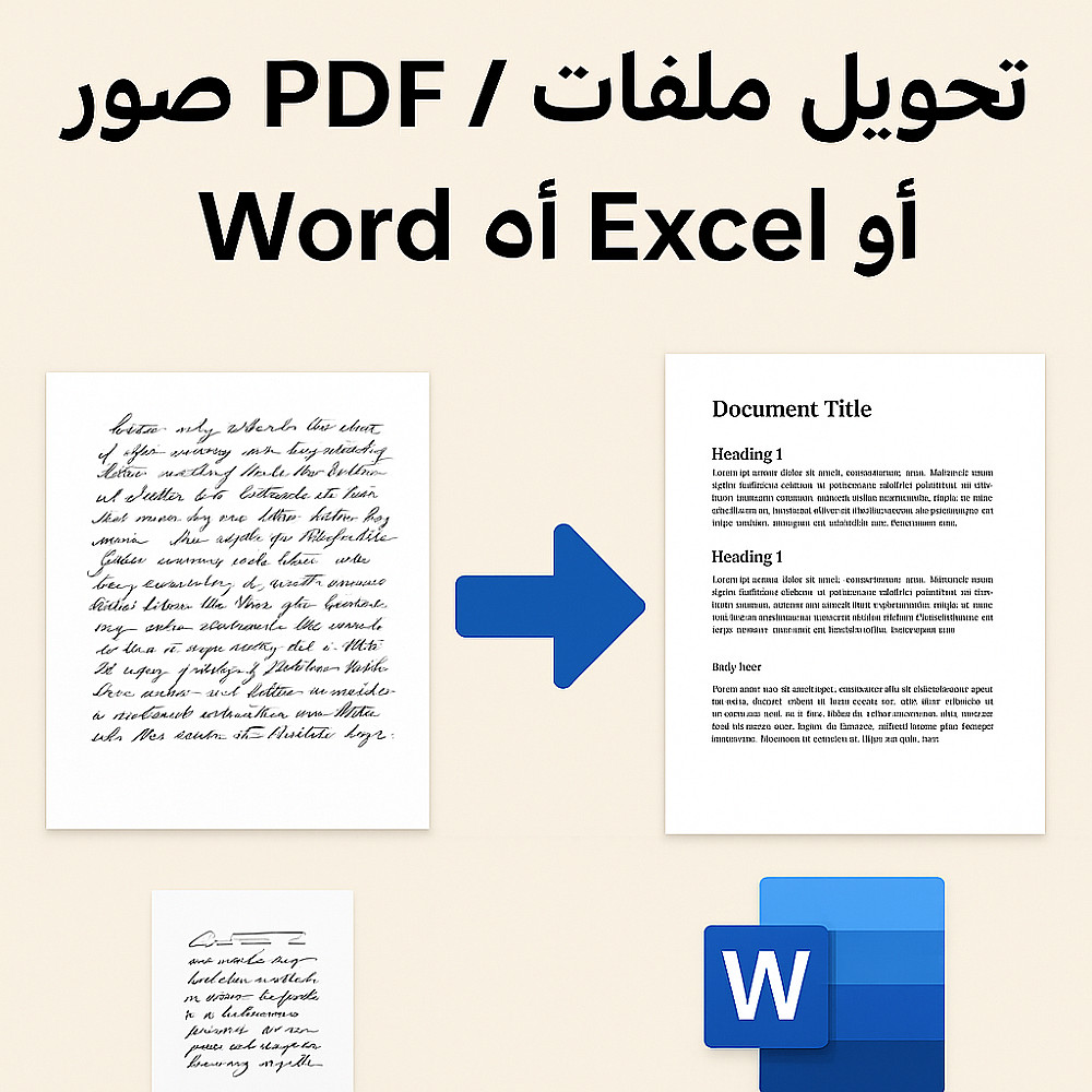 هل لديك ملفات PDF، صور سكانر، أو أوراق مكتوبة بخط اليد وتحتاج لتحويلها إلى ملفات Word أو Excel قابلة للتعديل؟