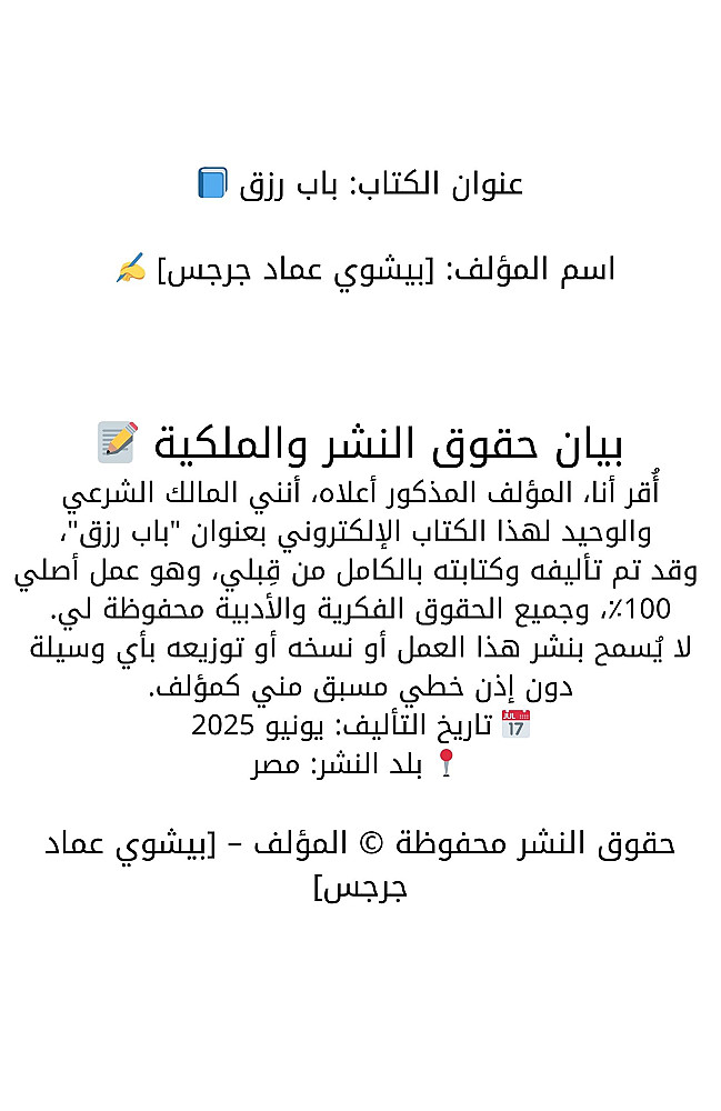 📌 جميع الحقوق محفوظة، وهذا العمل من تأليف مقدم الخدمة، ولا يُسمح بإعادة نشره أو نسخه بدون إذن.