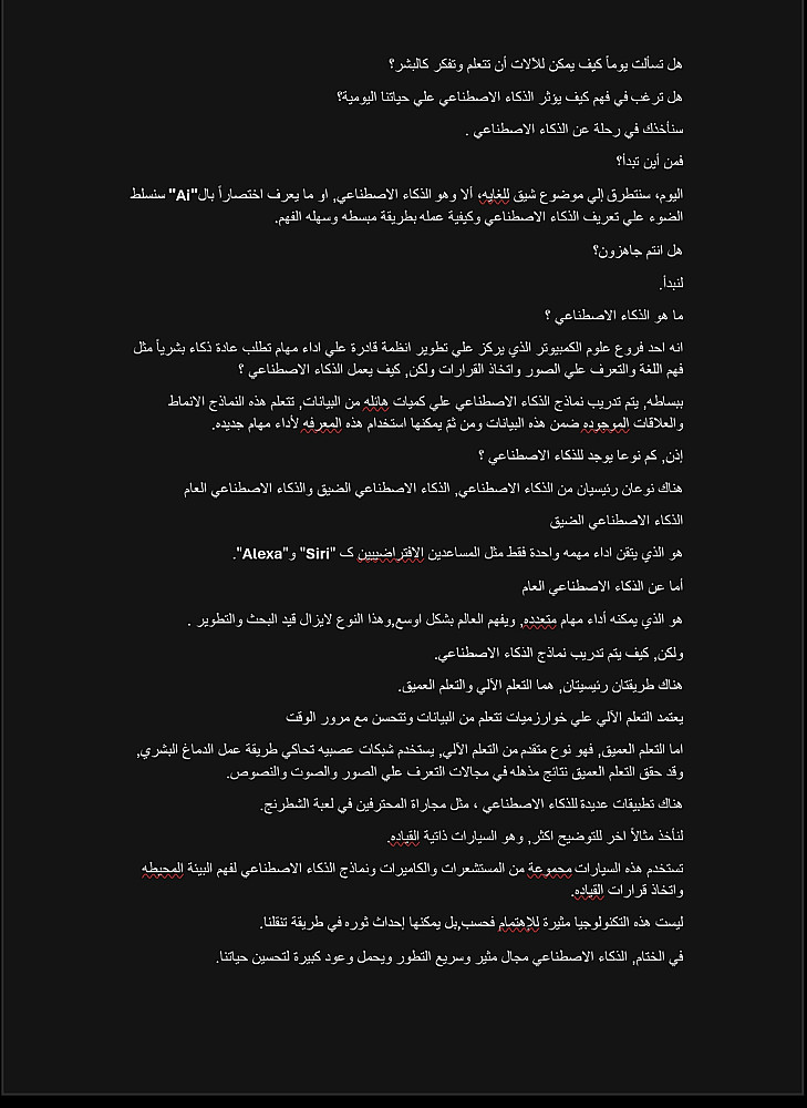 سواء كان المحتوى تعليميًا، طبيًا، اجتماعيًا أو وثائقيًا، أضمن لك نصًا جاهزًا للنشر أو الاستخدام الأكاديمي، مع احترام الوقت والسرية التامة.