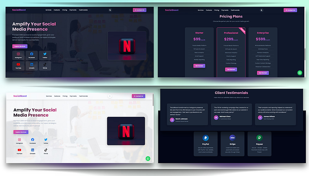 أقدم لك تصميم صفحة هبوط (Landing Page) أنيقة، سريعة، ومتجاوبة مع جميع الأجهزة،