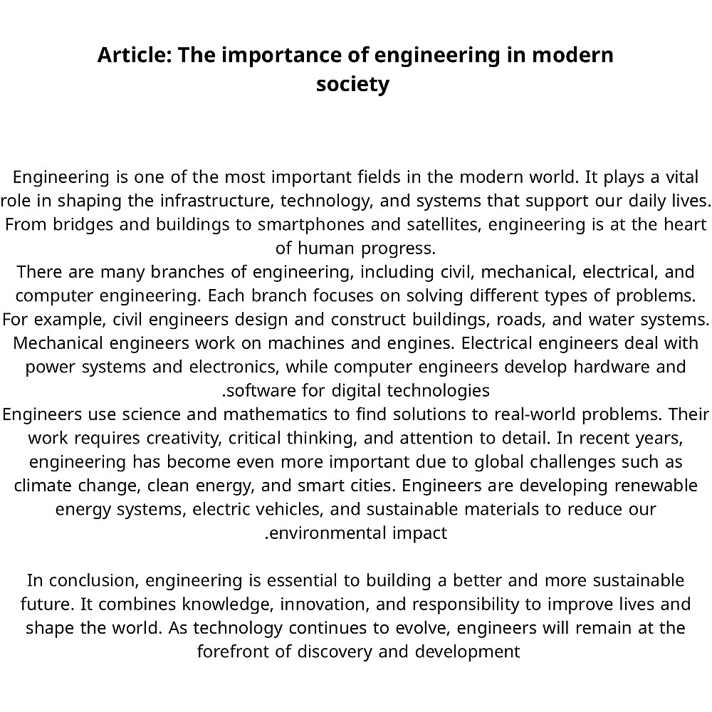 • تنسيق احترافي للنص المترجم (Word أو PDF أو نص او صوره حسب الطلب).