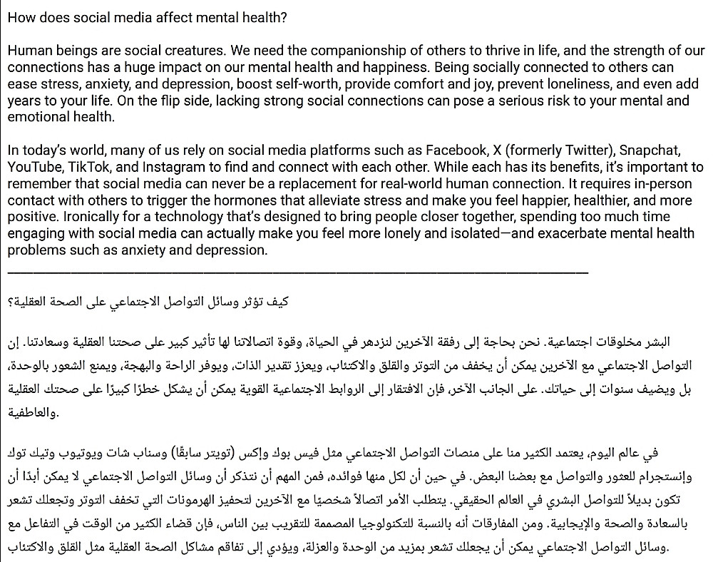 3- الترجمة يدوية بالكامل دون الإستعانة بأي ترجمة آلية لضمان سلاسة النص ودقته والحفاظ علي السياق العام.