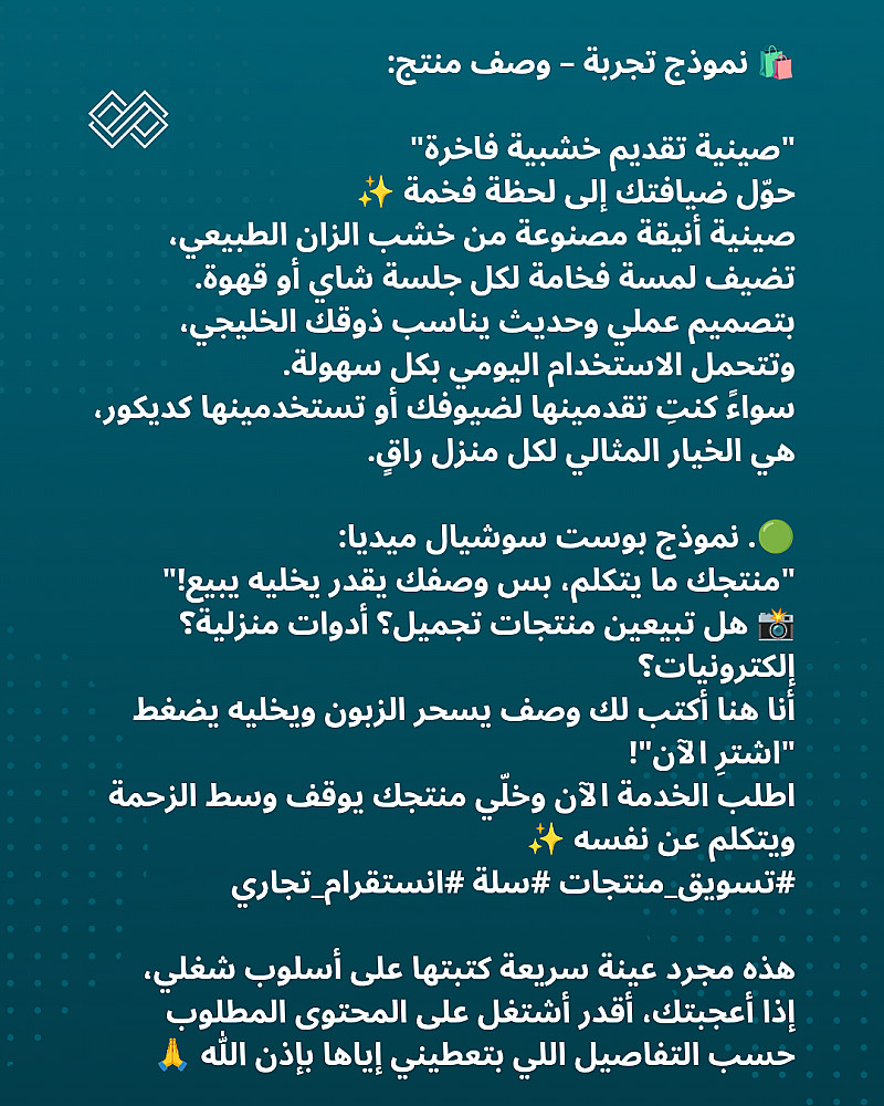 ✍️ كتابة وصف تسويقي جذاب لأي منتج (مناسب لمتاجر سلة أو إنستقرام