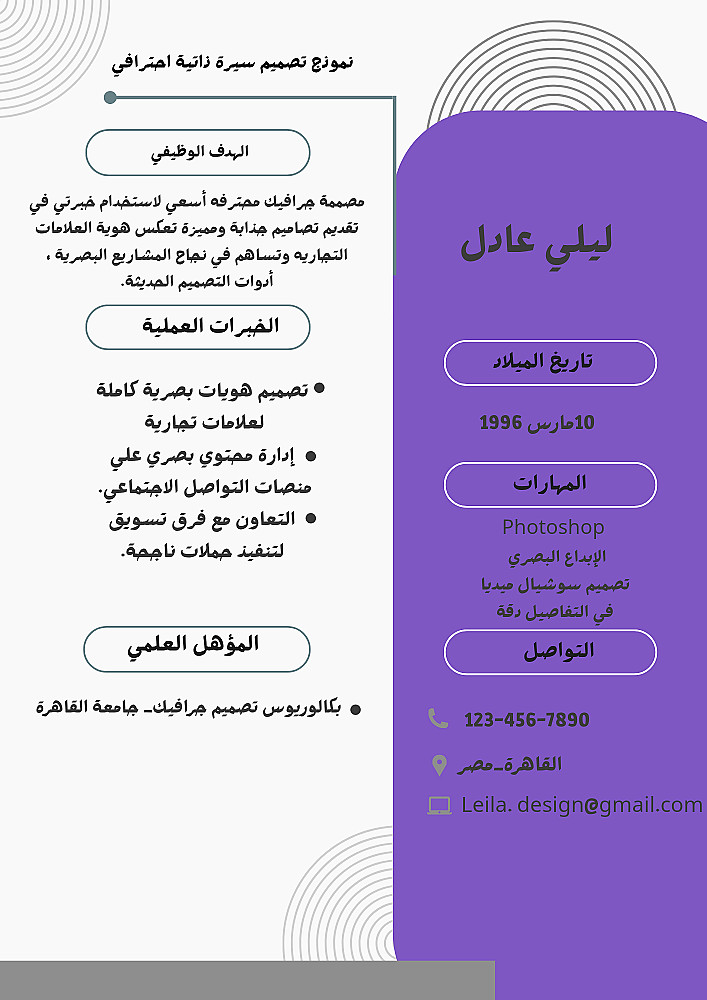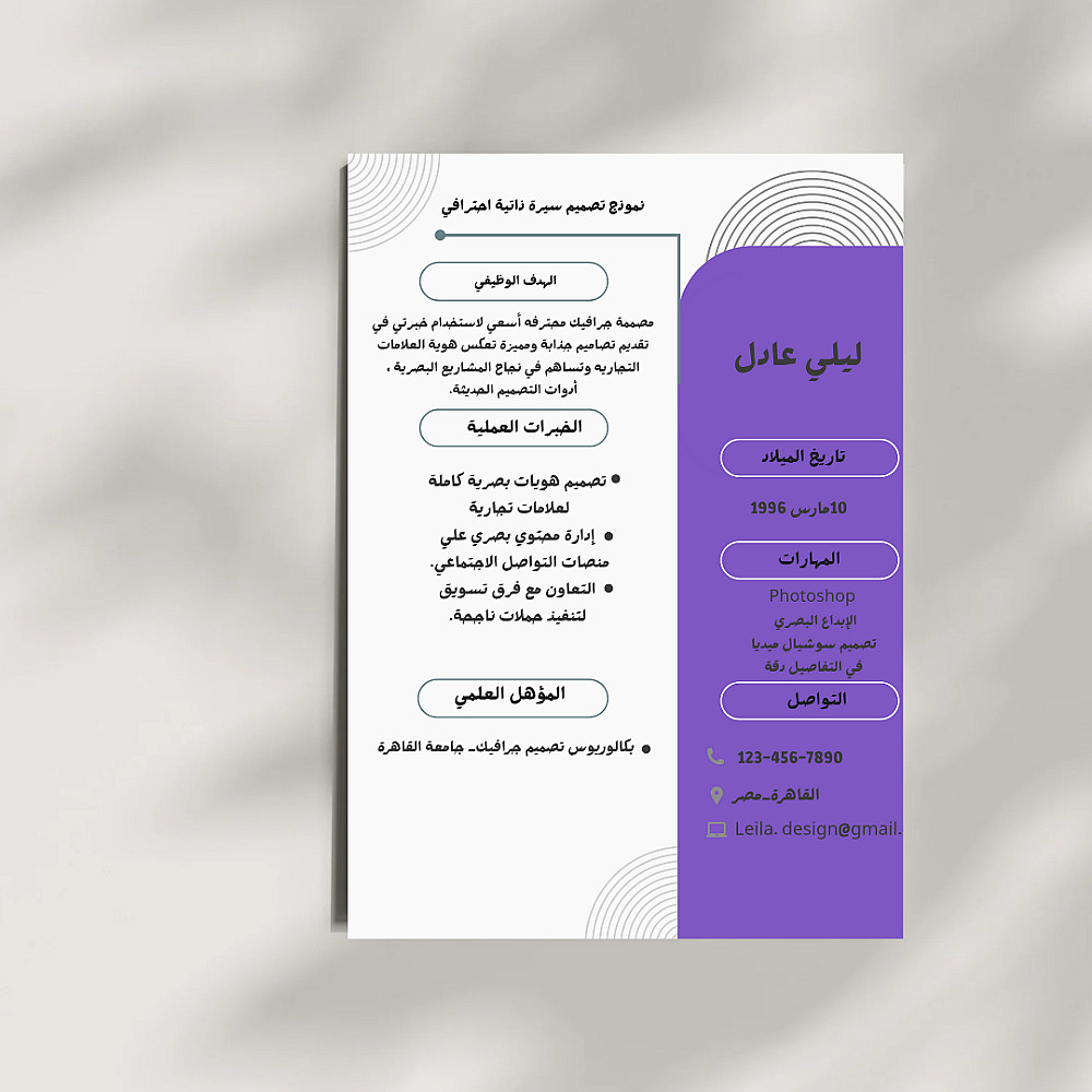 أقدّم لك خدمة تصميم سيرة ذاتية احترافية بصريًا، باستخدام قوالب عصرية مخصصة، تُبرز مهاراتك وخبراتك بطريقة واضحة وسهلة القراءة، وتمنحك حضورًا قويًا أمام أصحاب العمل.