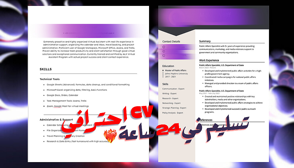 مناسبة للتقديم على مواقع مثل: LinkedIn – Upwork – وظّف – مستقل