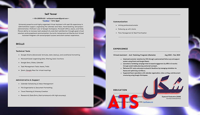 سأقوم بتسليمك سيرة ذاتية منظمة، متوافقة مع أنظمة تتبع المتقدمين (ATS)، مصممة بتنسيق نظيف بصيغة PDF.