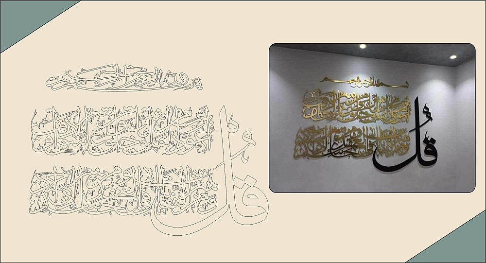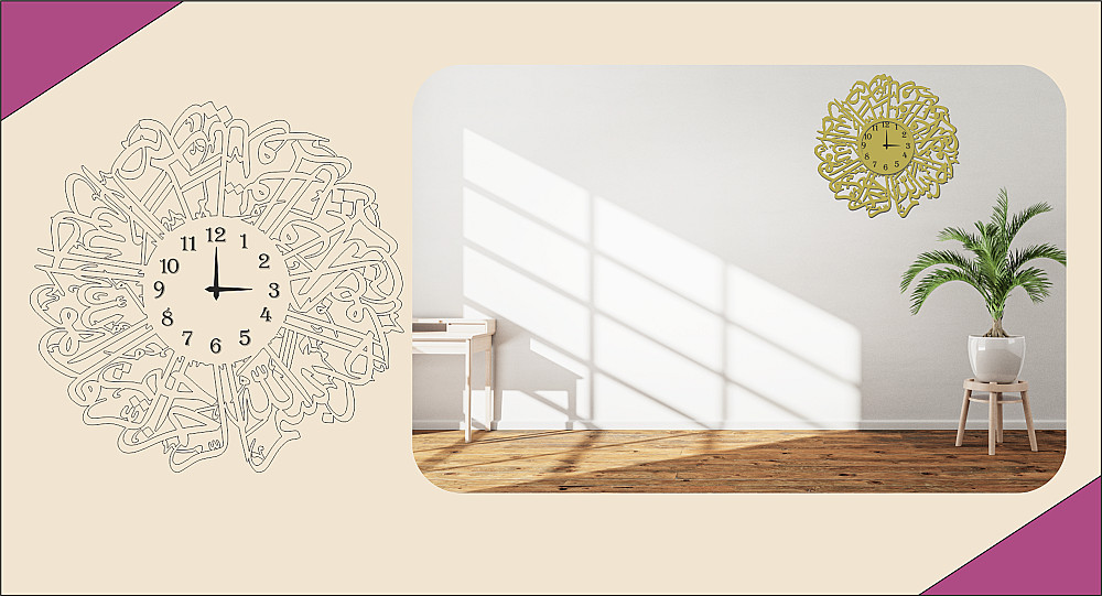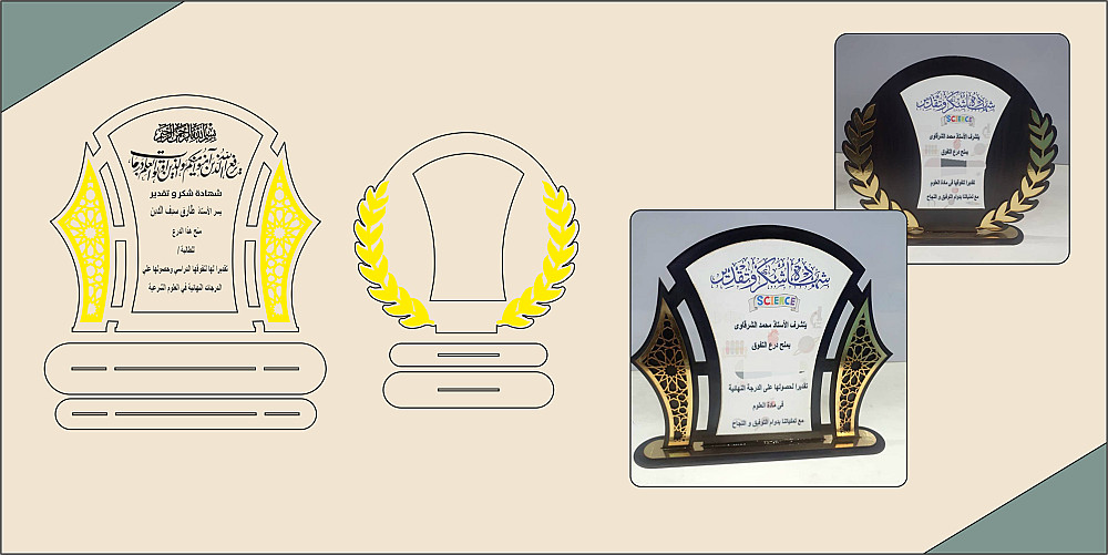 تصميم واحد فقط من اختيارك (مثال: زخرفة، ساعة حائط، آية قرآنية، علبة، صينية… إلخ)
