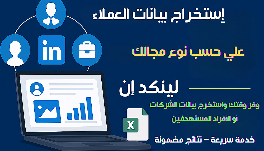 أقدّم لك خدمة احترافية لاستخراج بيانات العملاء من منصة لينكدإن حسب تخصصك أو مجالك