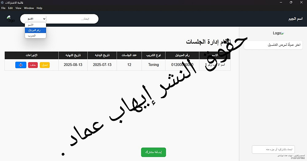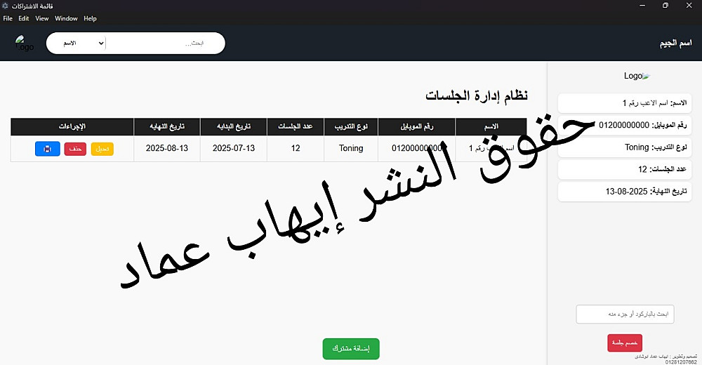 💬 يمكنني أيضًا تطوير نسخ مخصصة بحسب احتياج الجيم الخاص بك أو إضافة مزايا إضافية مثل الدفع الإلكتروني أو الربط بتطبيق موبايل.