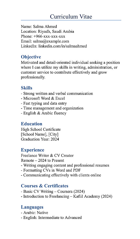 • تنسيق احترافي مناسب للتقديم على وظائف أو جامعات.