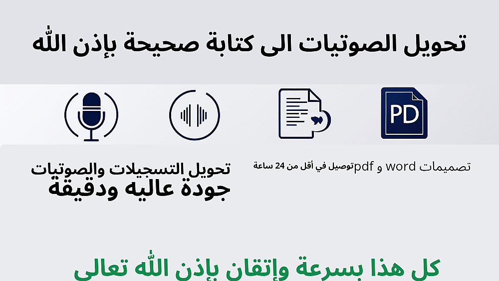 أقدّم لك خدمة تفريغ صوتي يدوي احترافية تشمل: